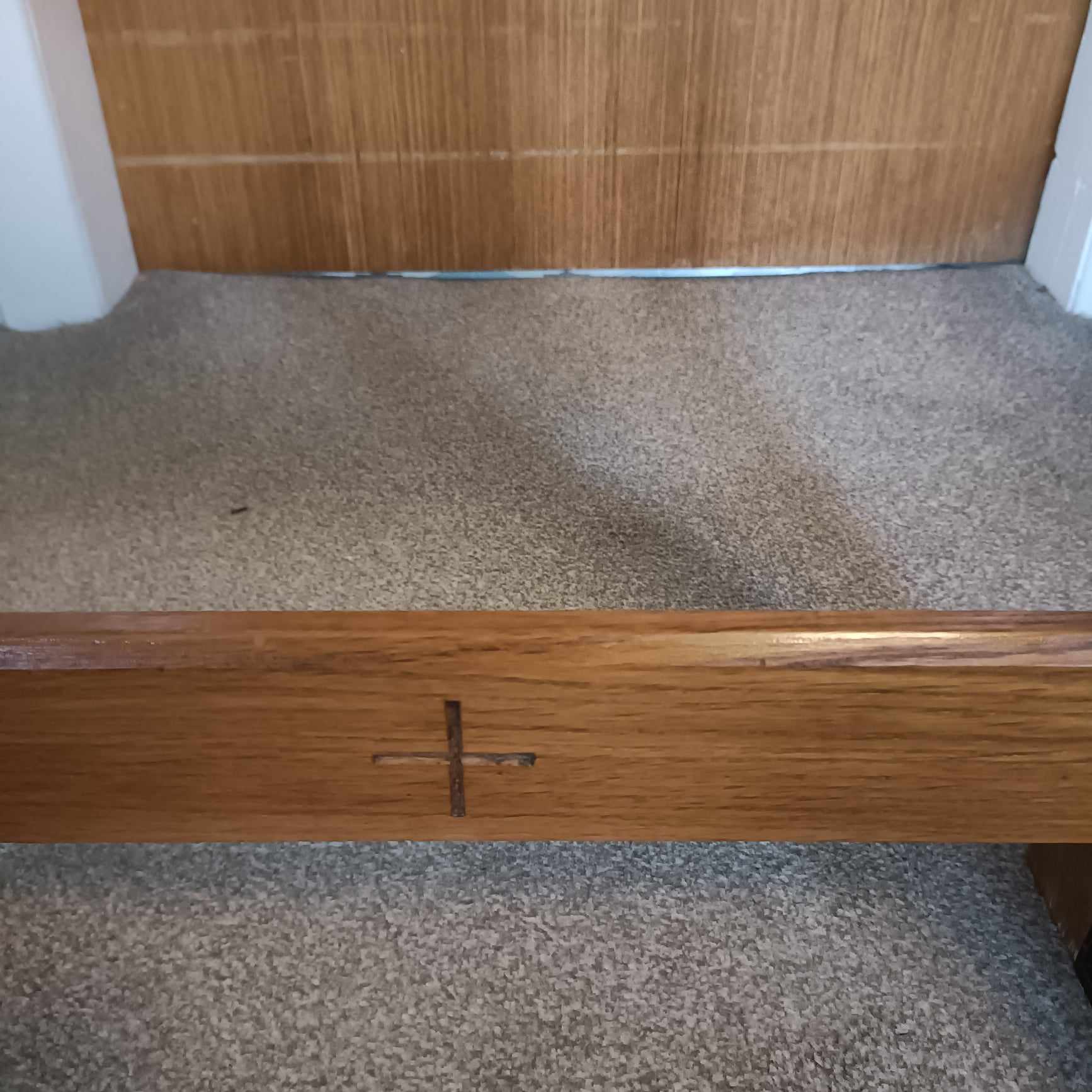Made by church fittings company Ormsby. Measures 20 ins long x 7.5 ins deep x 27 ins tall.