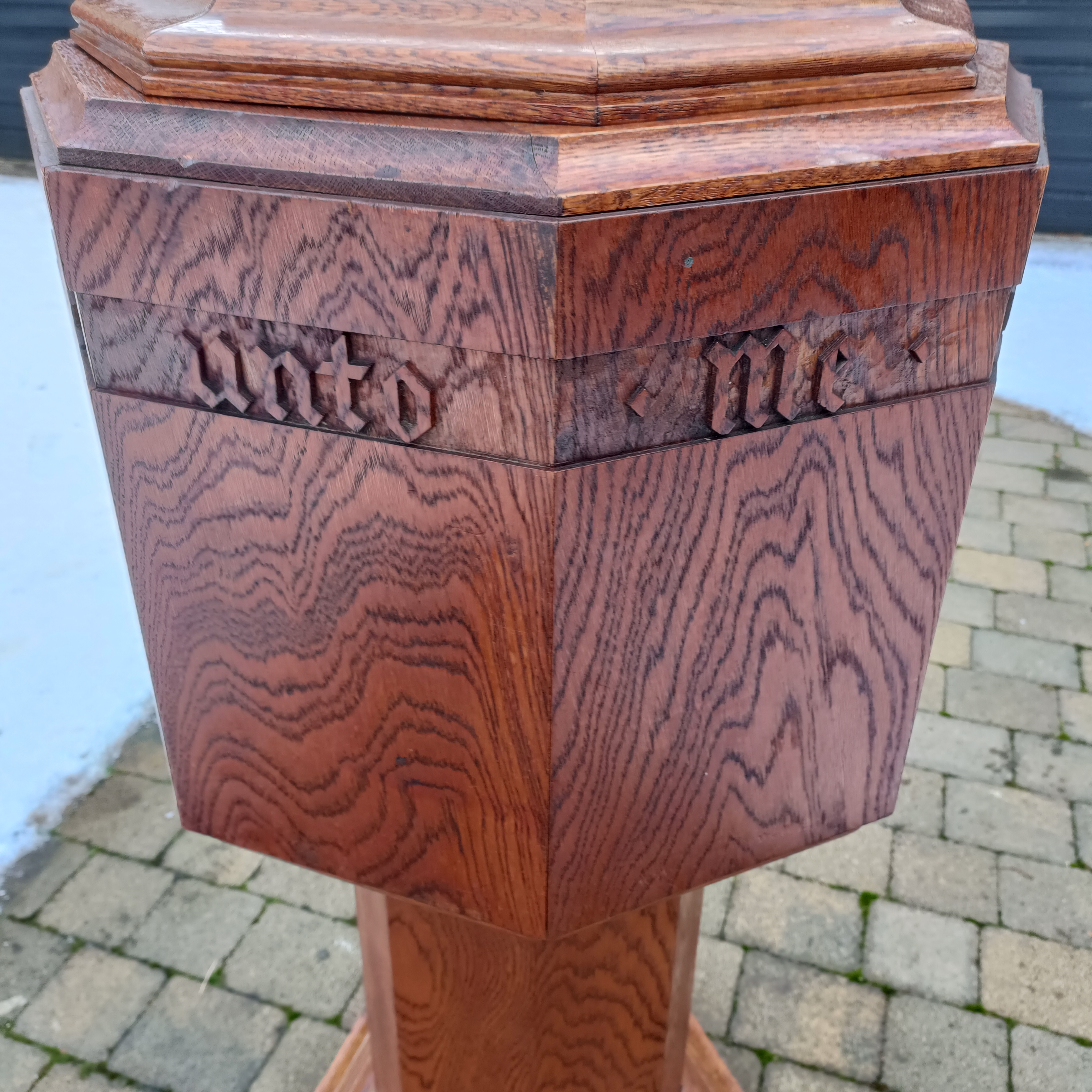 / Amazing Large Church Baptism Pine Font. C 1880.Original Copper Water Bowl.