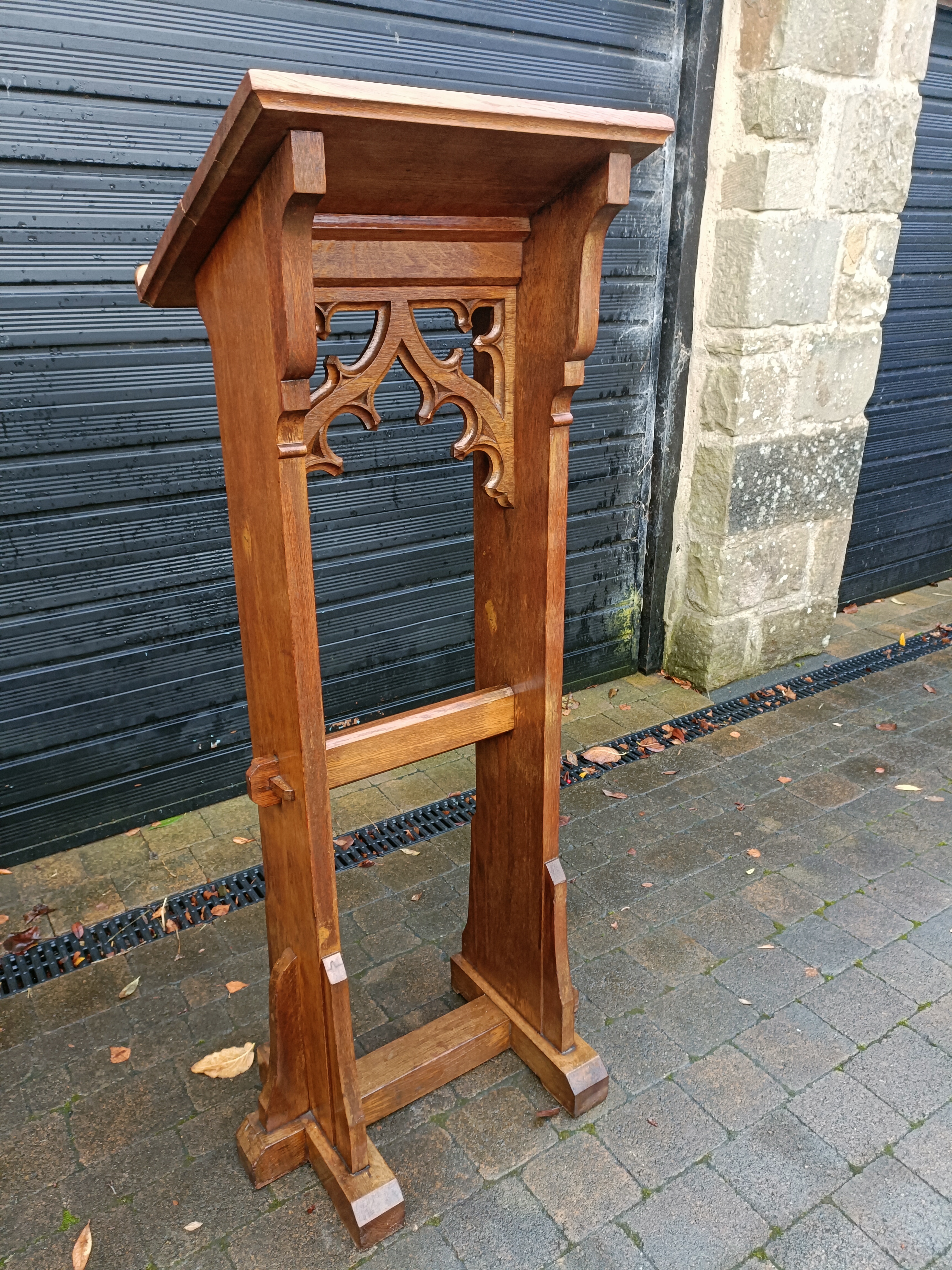 C1880 English Oak tall Lectern. Gothic quantity