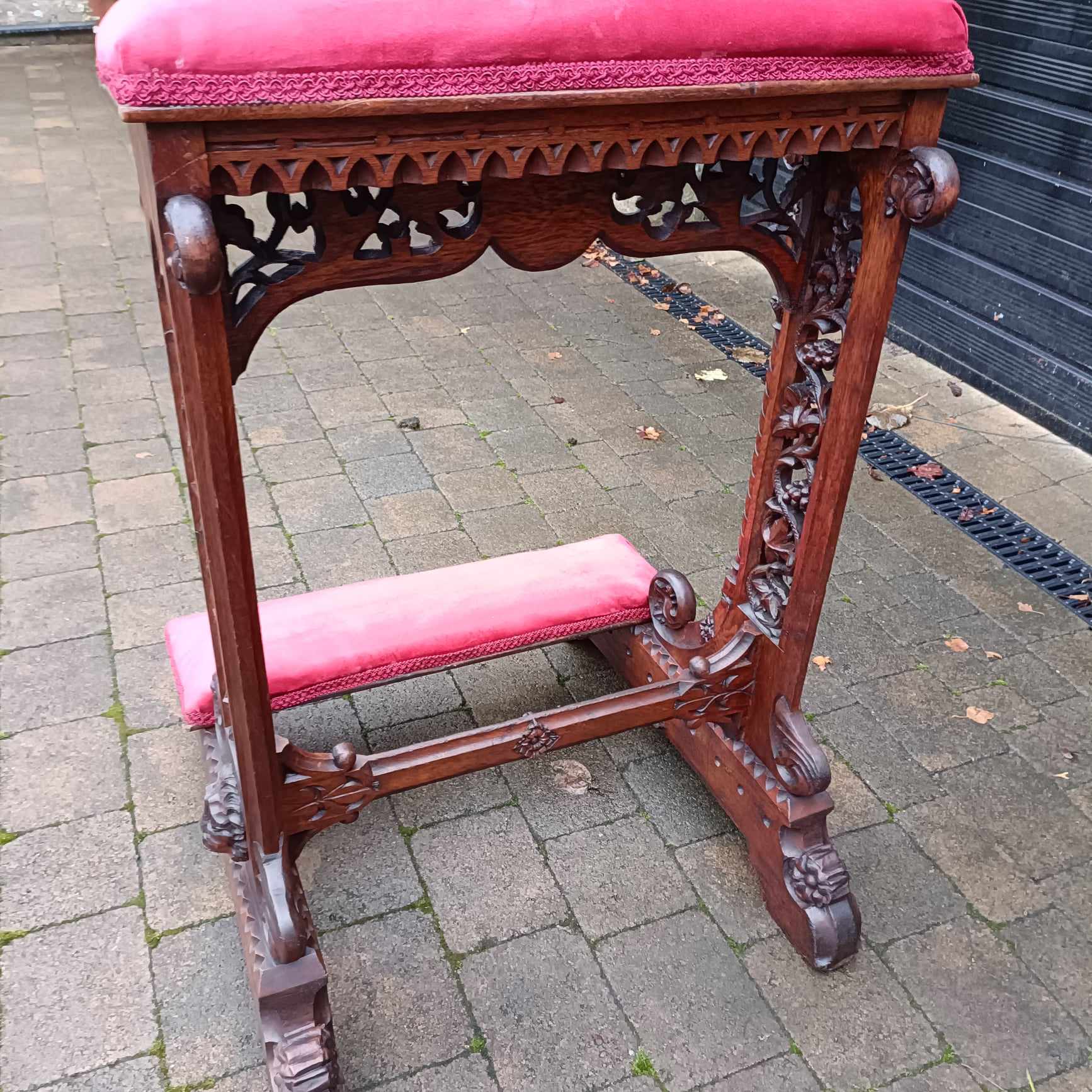 Dating to circa 1890 this finely carved oak kneeler is an exceptional piece.