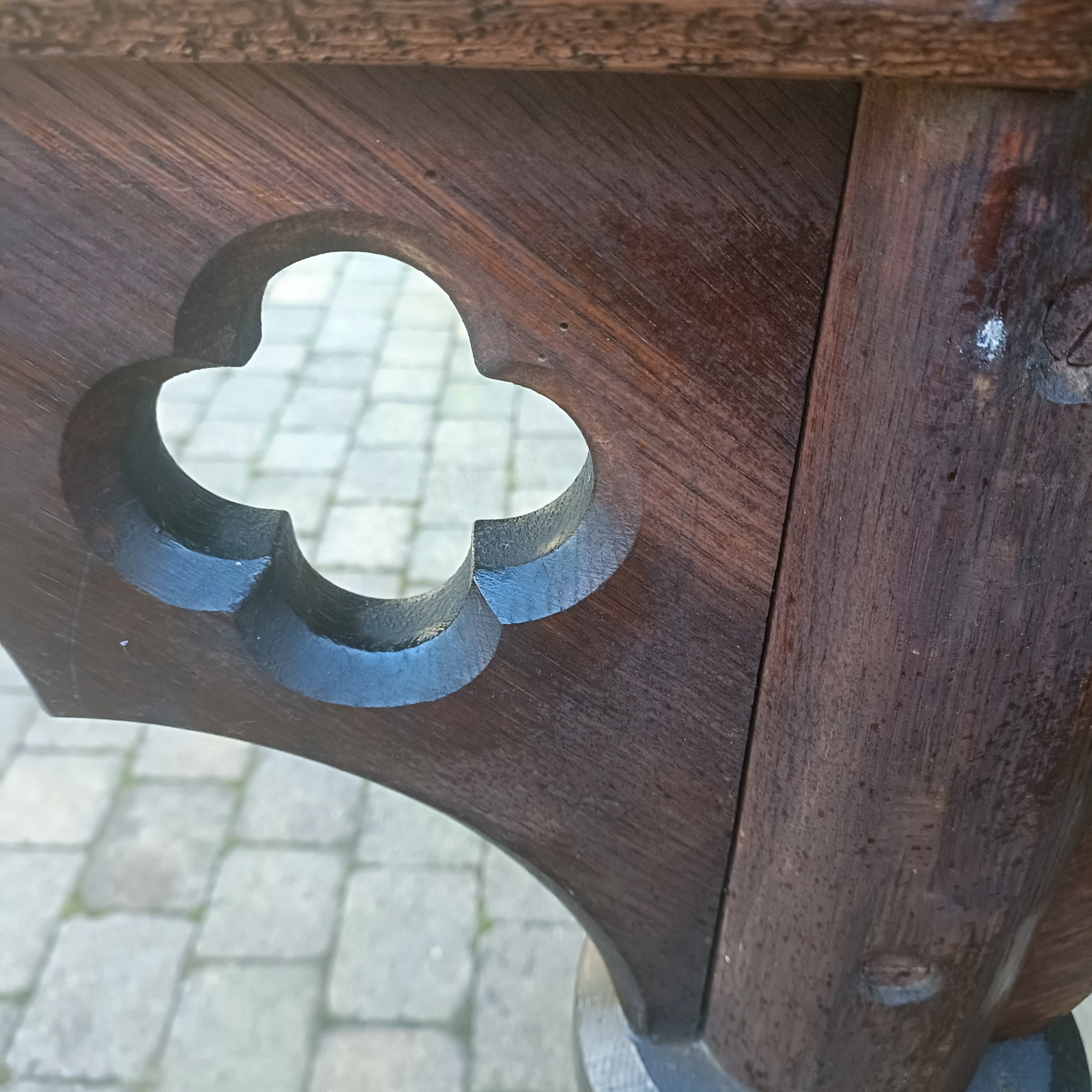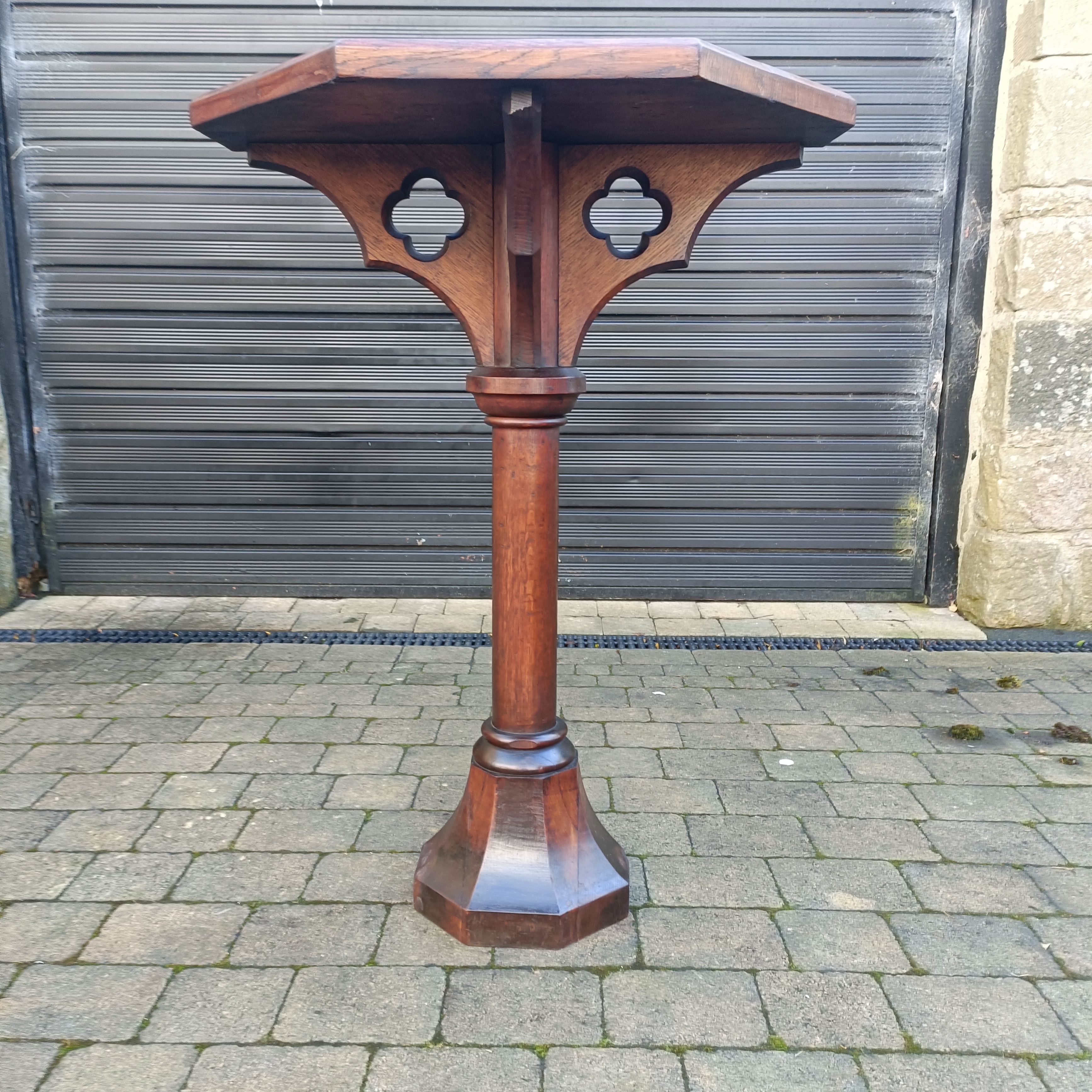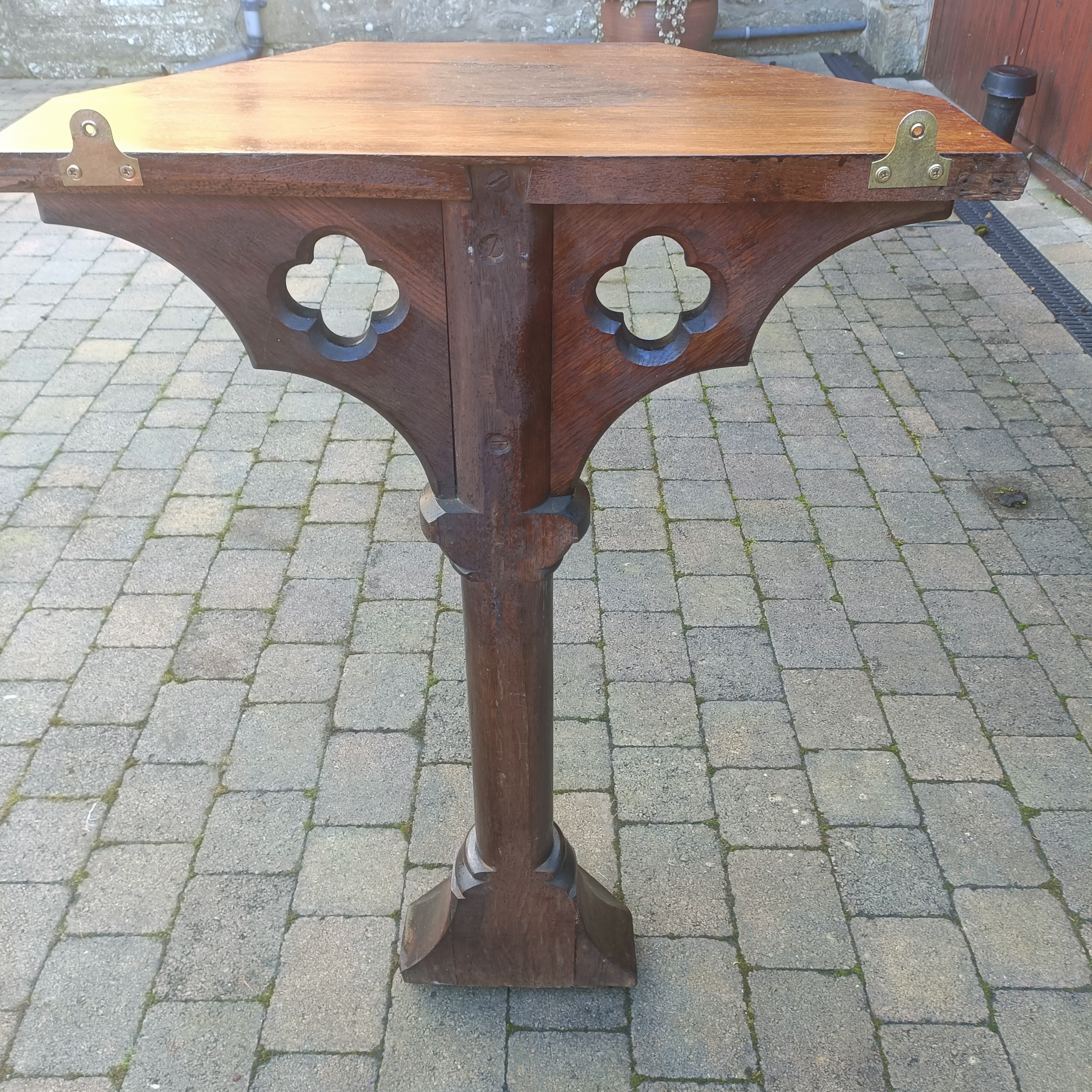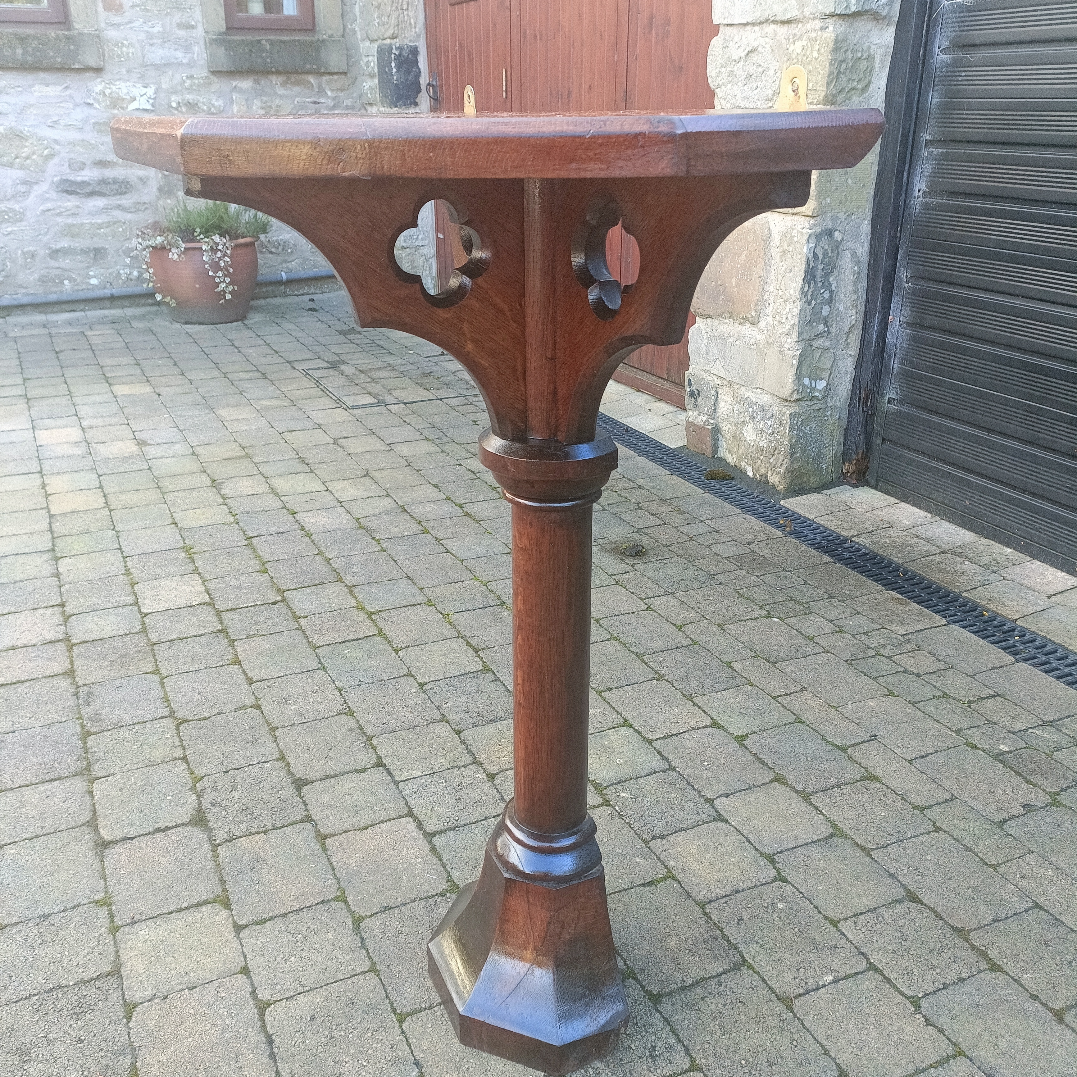 Oak Church Gothic Side Table.Sturdy. Heavy. C1890