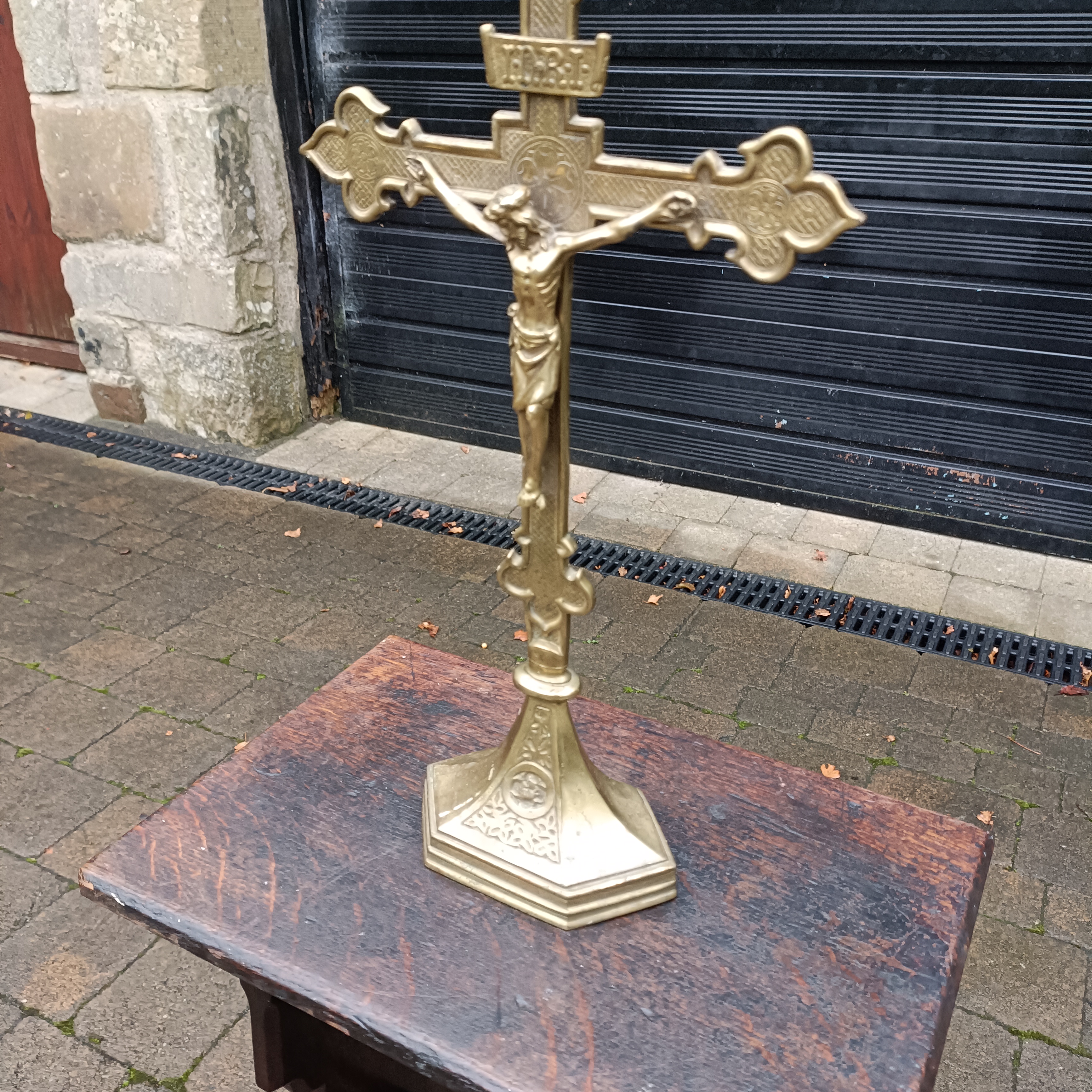 French Victorian Brass Alter Crucifix .17 ins x 9 ins.