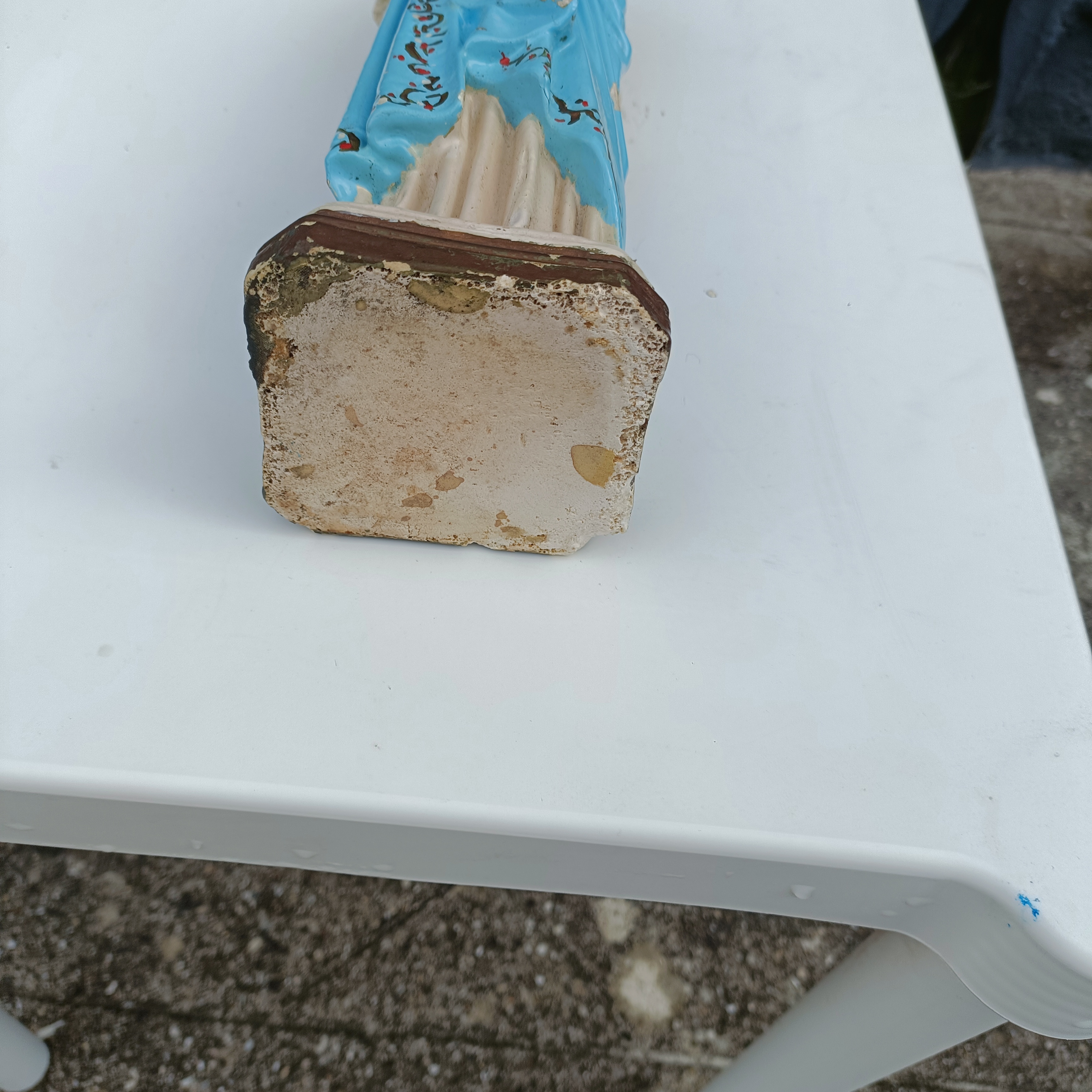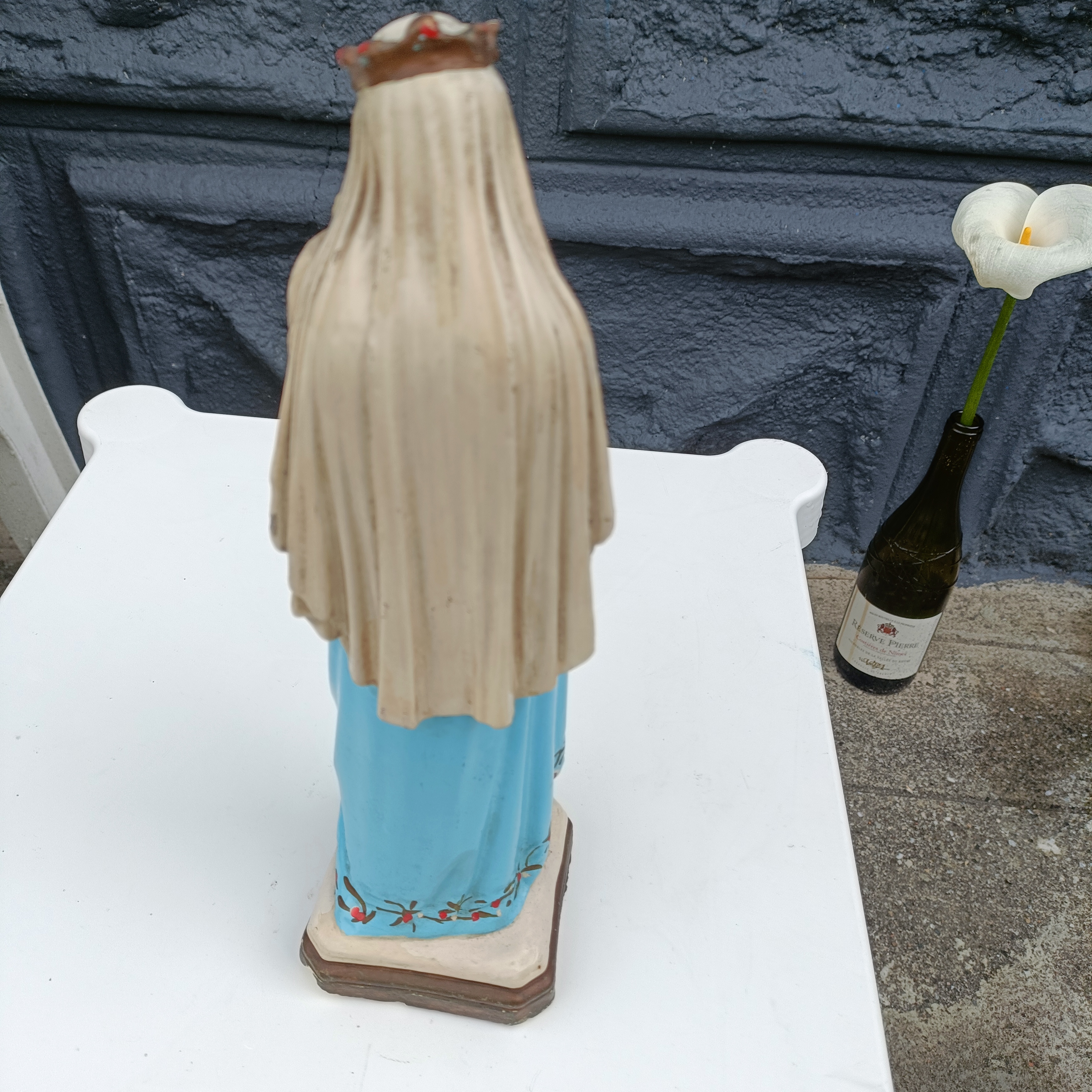 / Hand Painted French Statue of Madonna and Child. 11.5 ins tall. Solid. A few nibbles.