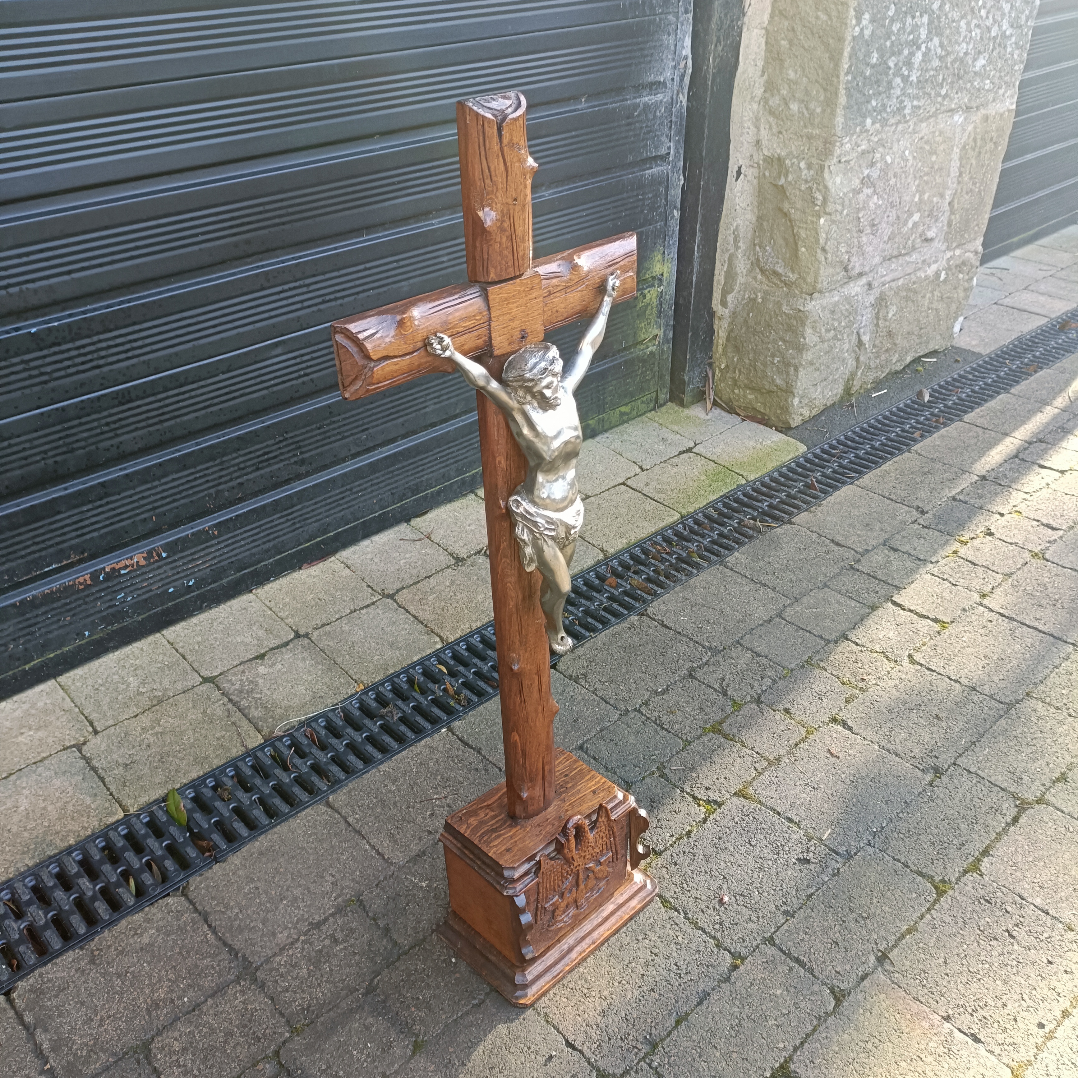 Large Church Alter Crucifix with metal Jesus. Russian or maybe Polish.