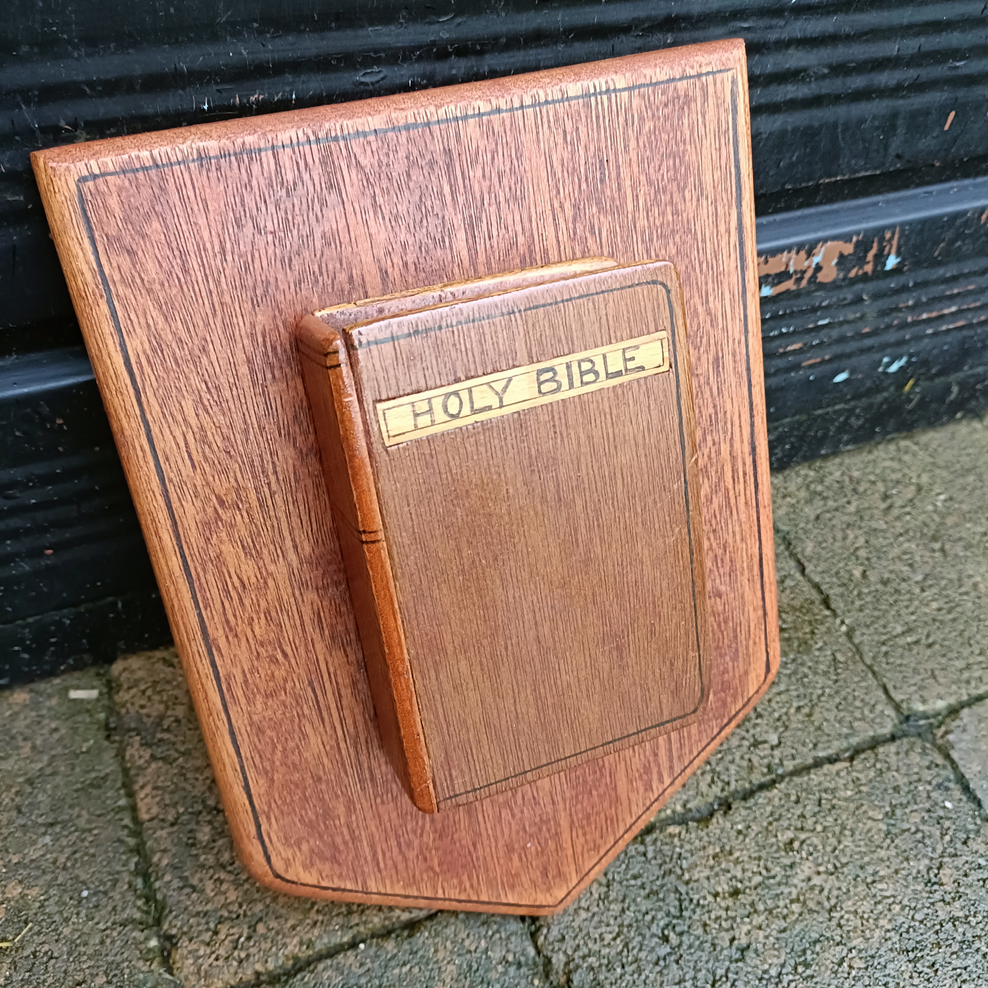 Oak Church Bible Plaque. Early 1900s. Very Unusual. Free postage within the UK.