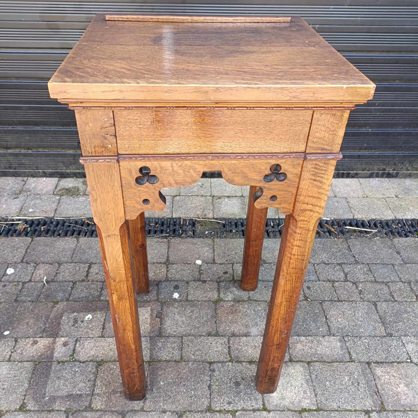 / Oak Church Gothic Side Table.Sturdy. Heavy. C1890