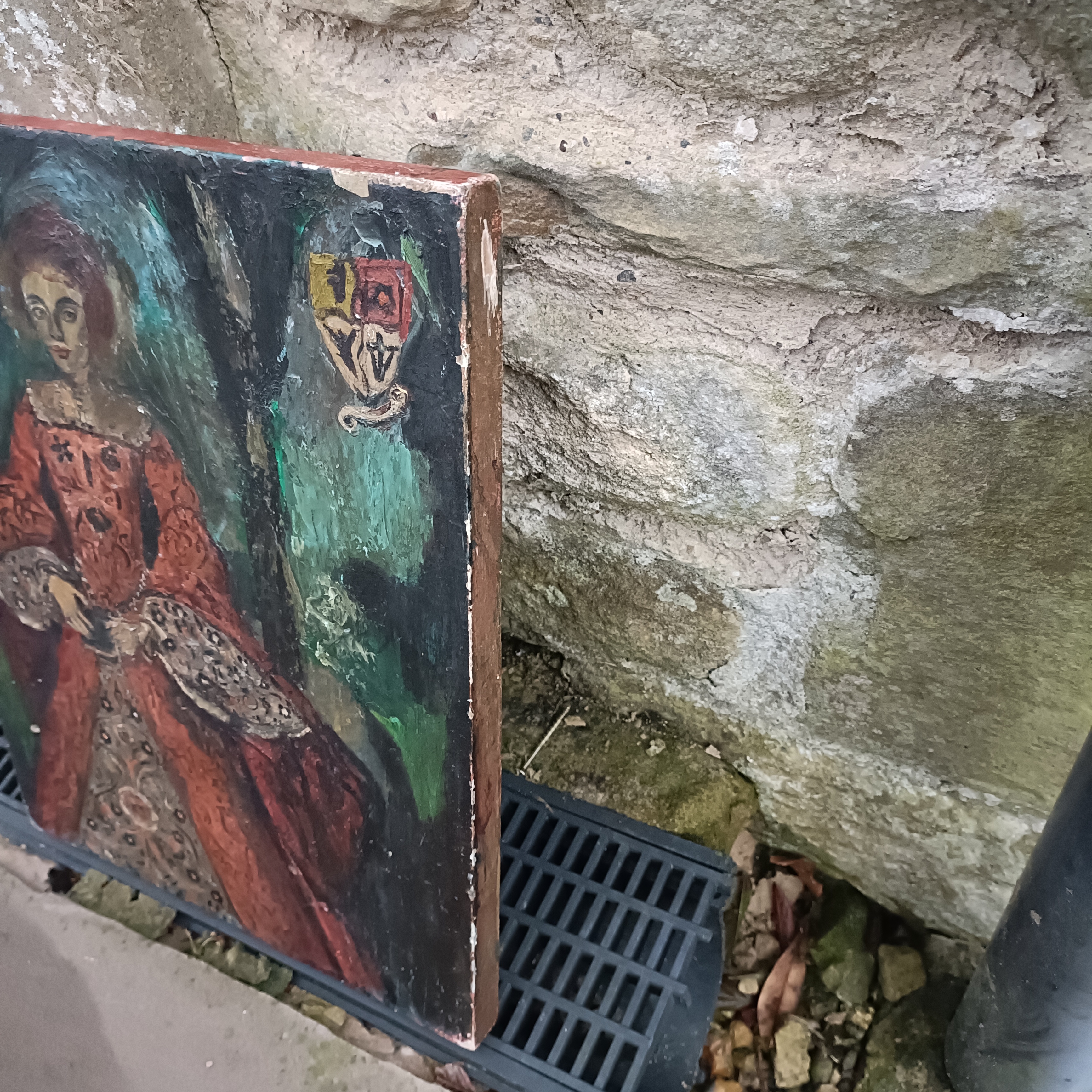 Religious Double Sided Painted Icon.One side Mary and Child. The other side an Elizabethan Portrait.