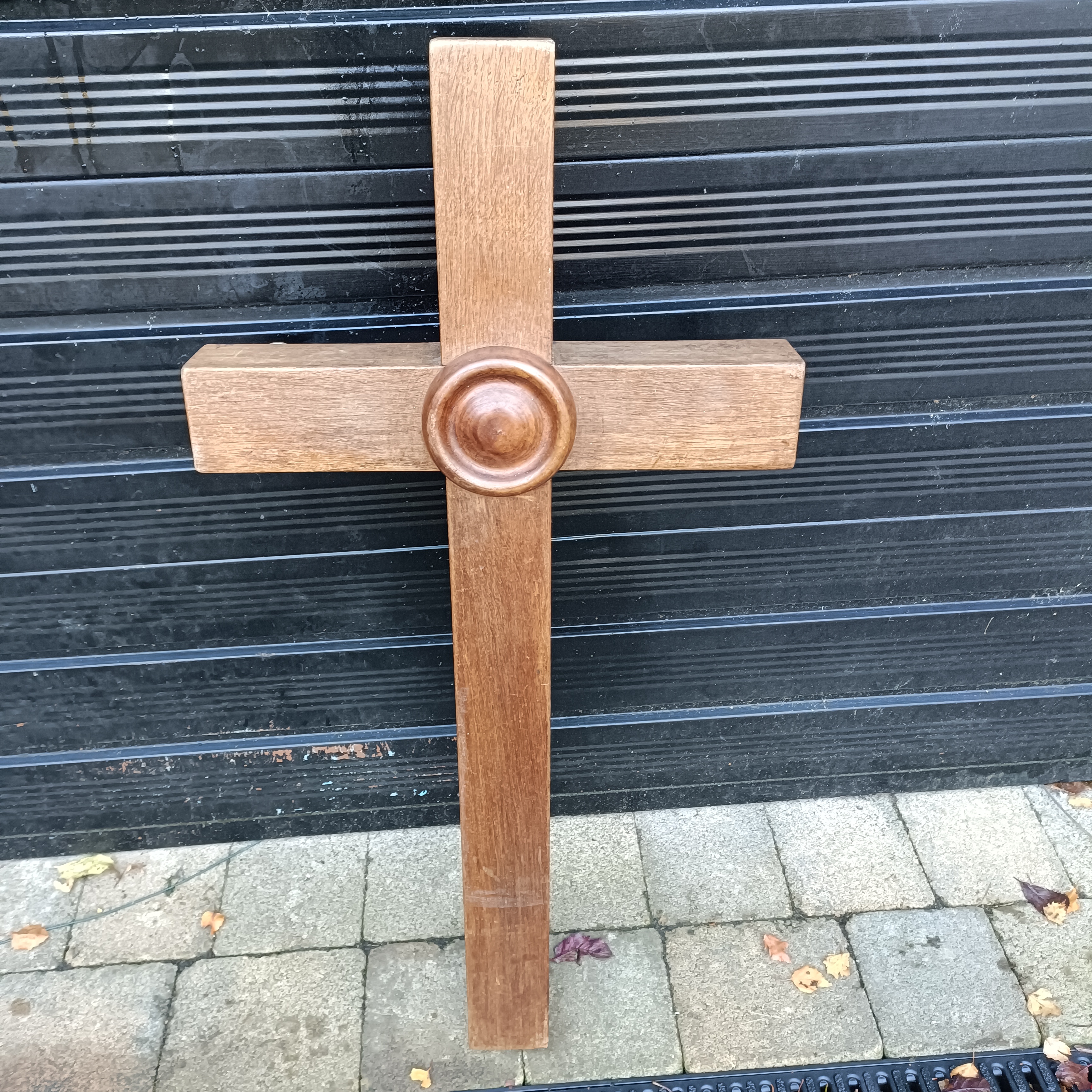 Very Rare Teak Church Funeral Cross with Brass Feet to rest on the Coffin at a Funeral. quantity