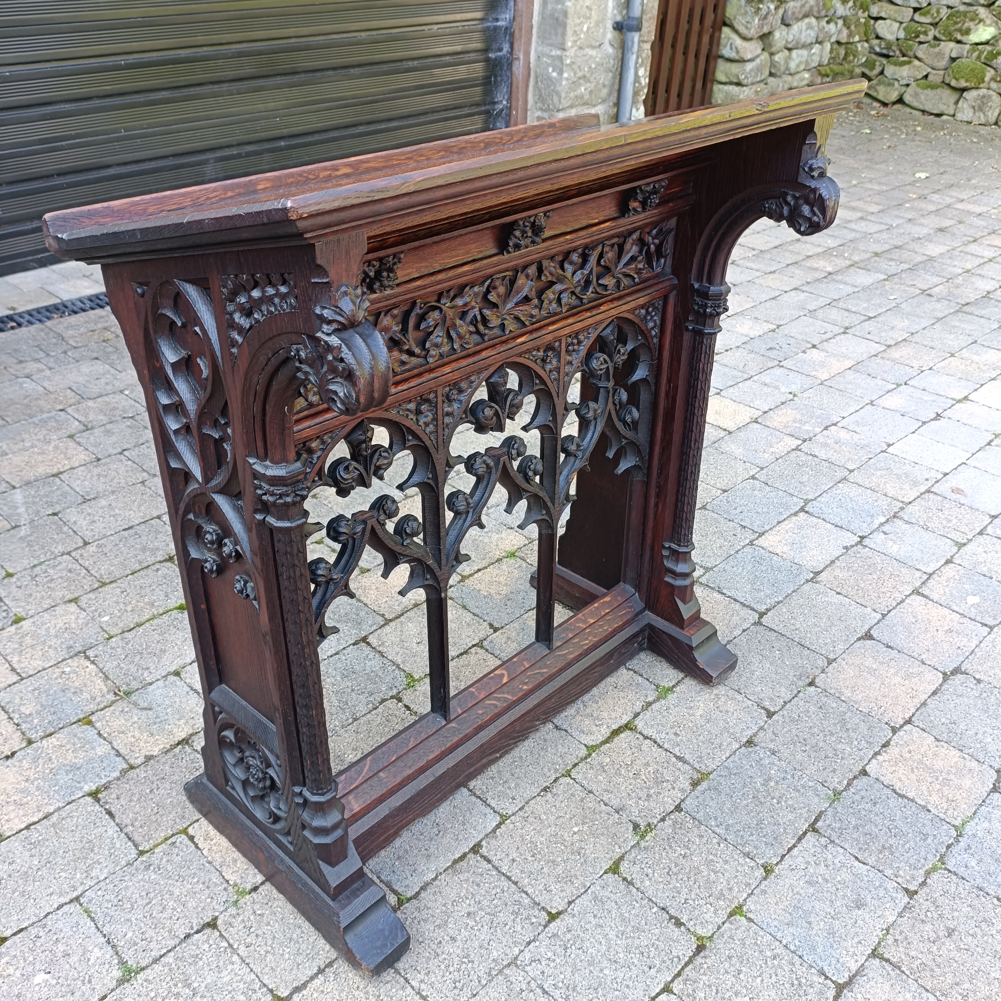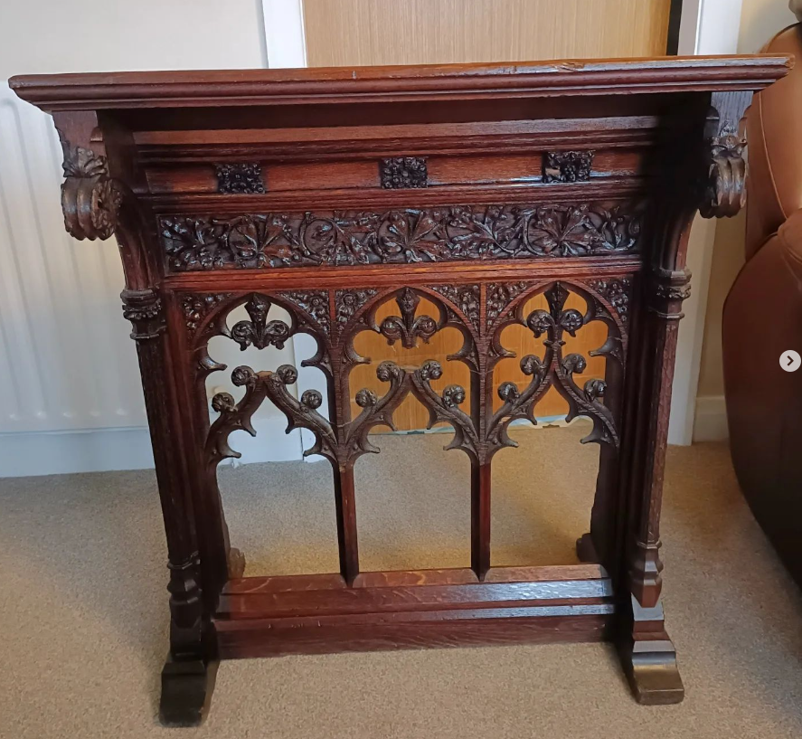 A superbly carved fine antique prayer kneeler in oak from an English Church. Slight damage as seen in photos .